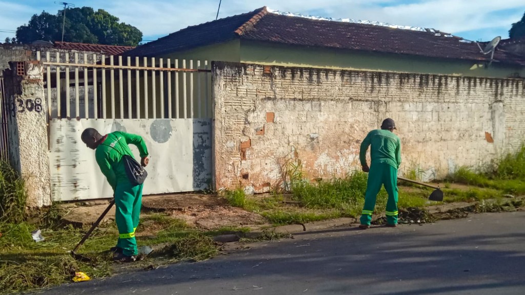 Os trabalhos envolvem serviços de varrição, roçagem, limpeza de áreas públicas, retirada de resíduos e entulhos, manutenção urbana e cuidados com a iluminação, atividades que fazem parte da rotina diária das equipes responsáveis por manter a cidade limpa, segura e bem cuidada.