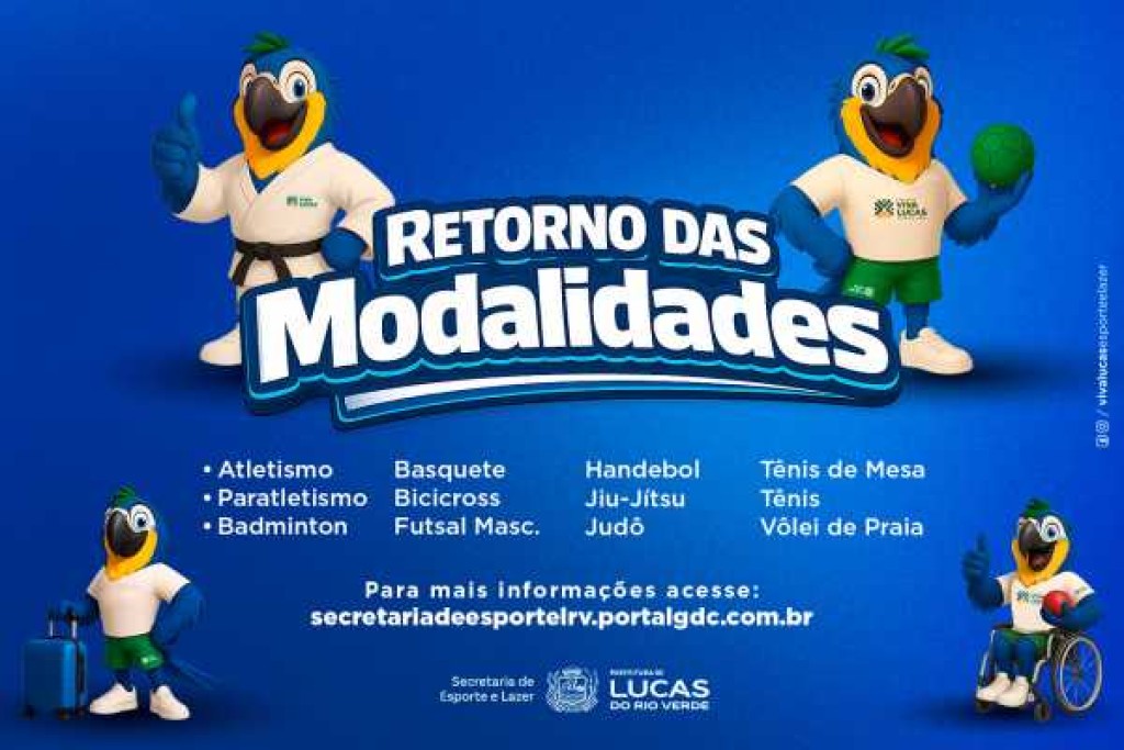 Para os interessados em participar das modalidades esportivas, a Secretaria de Esporte e Lazer disponibiliza na página da Prefeitura de Lucas do Rio Verde os horários das aulas e os telefones dos professores, para que os pais ou responsáveis entrem em contato para mais informações. Basta clicar na página Esporte e Lazer e acessar a guia Modalidades Esportivas, no seguinte endereço eletrônico: https://www.lucasdorioverde.mt.gov.br/site/secretaria/esporte-e-lazer/