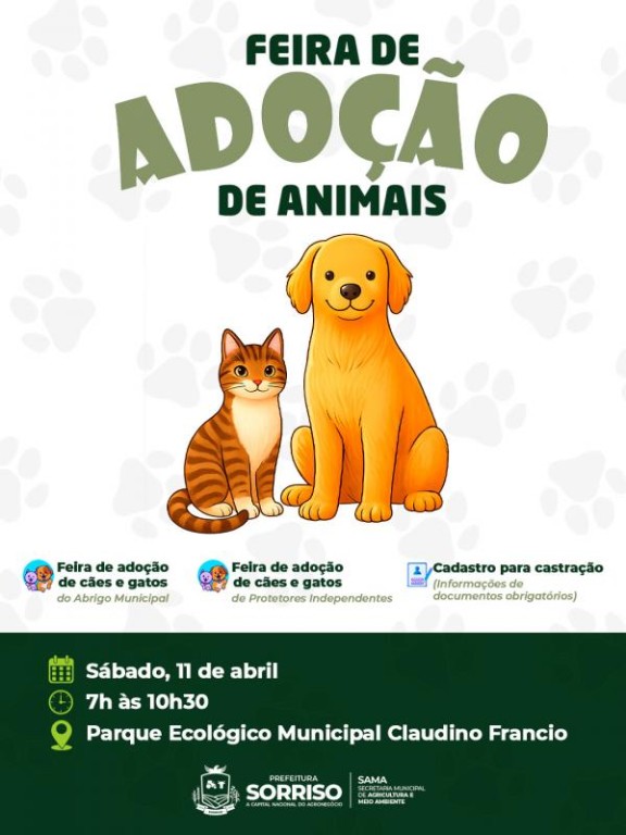 A intenção é trazer cães e gatos que hoje estão no Abrigo Municipal de Cães e Gatos para mais perto da população e assim possibilitar que mais pessoas possam adotá-los, já que o Abrigo Municipal é distante do centro, explica o gestor da Sama, Clóvis Picolo Filho. Também estarão na feirinha animais mantidos por protetores independentes.