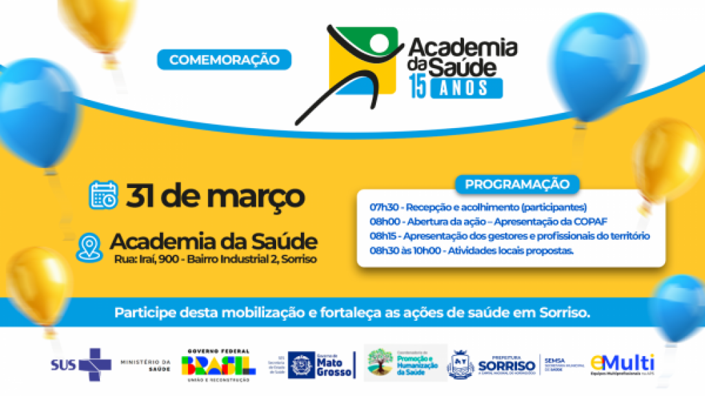A programação, que será realizada no próprio espaço da Academia da Saúde na rua Iraí, n.º 900, Bairro Industrial 2 com início às 7h30. Após a abertura e apresentação dos responsáveis, das 8h30 às 10 horas será realizado um circuito com as atividades desenvolvidas pelos profissionais sorrisenses.