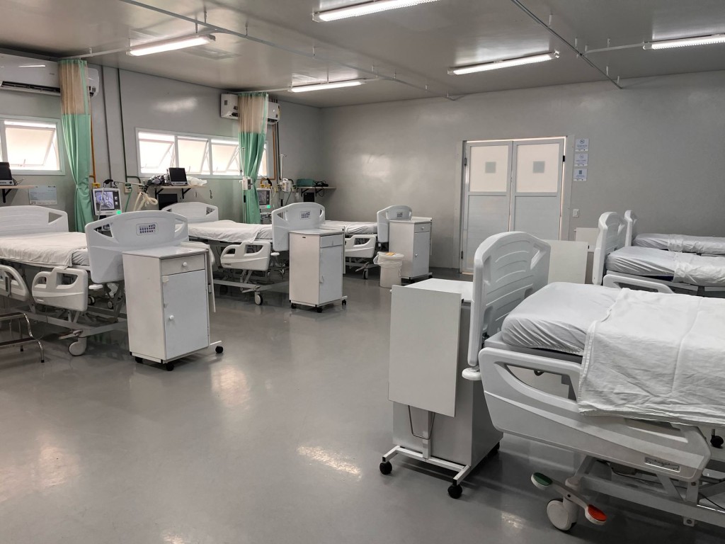 A imagem mostra a enfermaria da UPA Leblon, após ser limpa, desinfectada e dedetizada, por conta do temporal que afetou partes da estrutura da unidade.