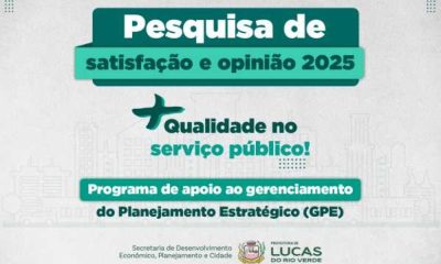 Lucas do Rio Verde4 dias agoMoradores já podem participar de pesquisa de opinião sobre os serviços públicos da Prefeitura de Lucas do Rio Verde