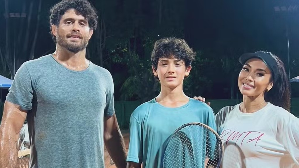 Danni Suzuki e o ex, Fábio Novaes, curtem dia de tênis com o filho: ‘O filho inspira’