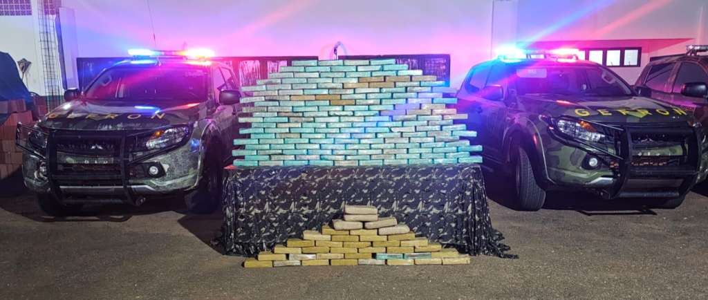 Os policiais faziam patrulhamento pela rodovia federal por volta das 19h quando avistaram o veículo e realizaram a abordagem. Na picape, haviam alguns galões de combustível e, após verificação, os militares descobriram que havia 185 tabletes de pasta base de cocaína e cinco de maconha no interior.