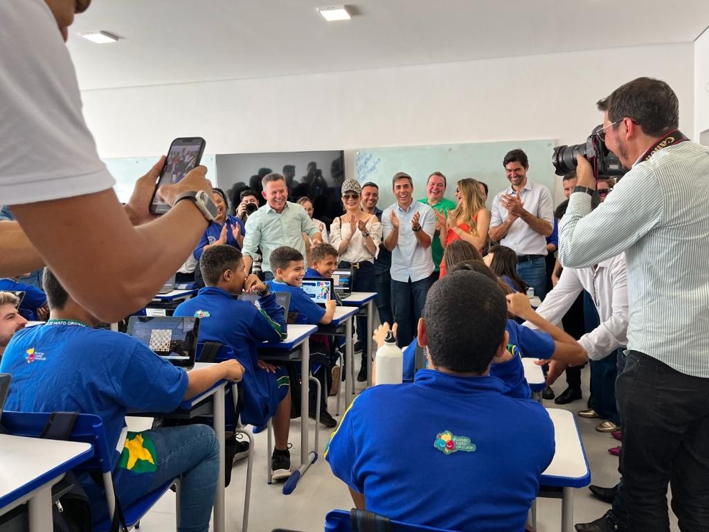 “Estudei a minha vida inteira na escola pública. Hoje, com os investimentos do Governo, o ensino público voltou com muito mais força e qualidade. Muitos alunos de escola particular estão migrando para a pública porque hoje nós temos tecnologias que antes não tínhamos. Temos muita coisa para fazer, e não vamos conseguir fazer tudo o que é preciso fazer, mas estamos colocando a educação no rumo muito melhor. A educação é que irá garantir um bom futuro para todos vocês”, afirmou o governador Mauro Mendes durante a entrega da escola.