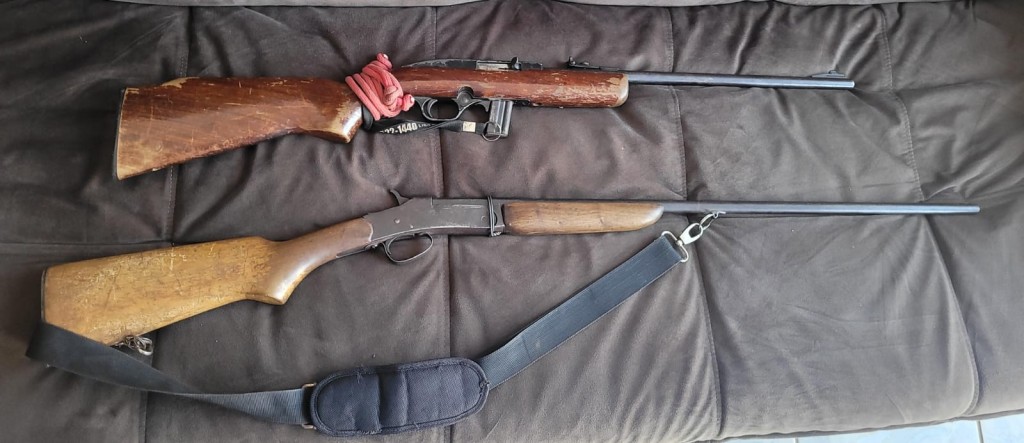 Em um dos cômodos, as equipes encontraram uma espingarda calibre 22 e uma espingarda calibre 36. Além das armas, foram apreendidos 21 munições calibre .22 deflagrados, 42 cartuchos calibre .36 também deflagrados, um cartucho calibre 36 intacto, 95 espoletas calibre 36 e uma pequena quantidade de pólvora.