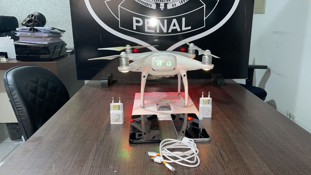 As equipes agiram imediatamente, perseguiram o aparelho pela laje e abateram o drone, que levava a carga de dois celulares e dois carregadores.