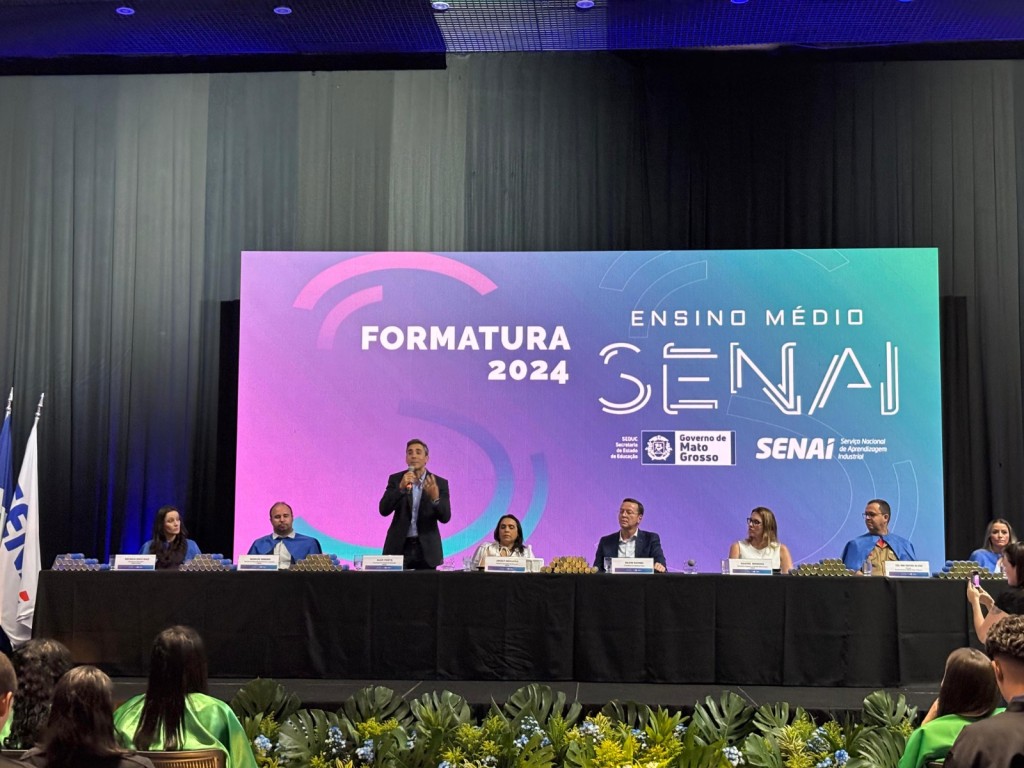 A Secretaria de Estado de Educação (Seduc) e o Serviço Nacional de Aprendizagem Industrial de Mato Grosso (Senai-MT) deram início, na noite desta terça-feira (03.11), em Cuiabá, a uma sequência de formaturas de mais de 800 alunos da Rede Estadual que finalizaram o Novo Ensino Médio neste ano de 2024.