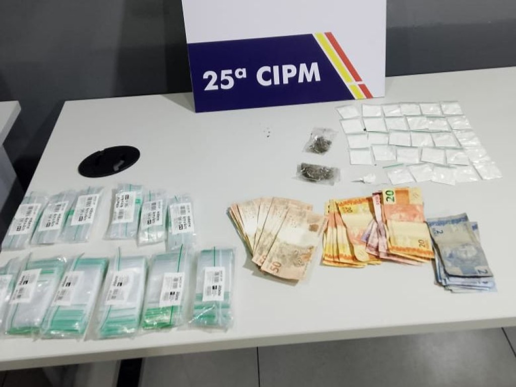 Na abordagem a um dos homens, os policiais encontraram a quantia em dinheiro e uma pequena caixa contendo todas as porções de cocaína apreendidas. Com os outros dois suspeitos, a PM localizou porções de maconha e alguns materiais para a embalagem dos entorpecentes.