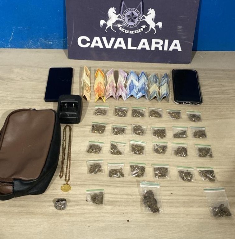 Cavalaria da PM prende dois faccionados por tráfico de drogas, apreende entorpecentes e recupera moto furtada