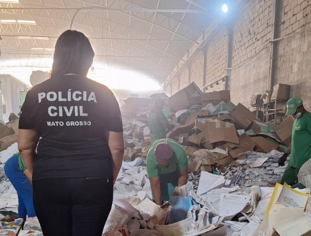 Mais de 1,4 toneladas de documentos que perderam a validade foram eliminados pela Polícia Civil, na manhã desta quarta-feira (28.08), no segundo descarte do ano, foi realizado pelo Arquivo Central, em uma empresa de reciclagem em Várzea Grande.