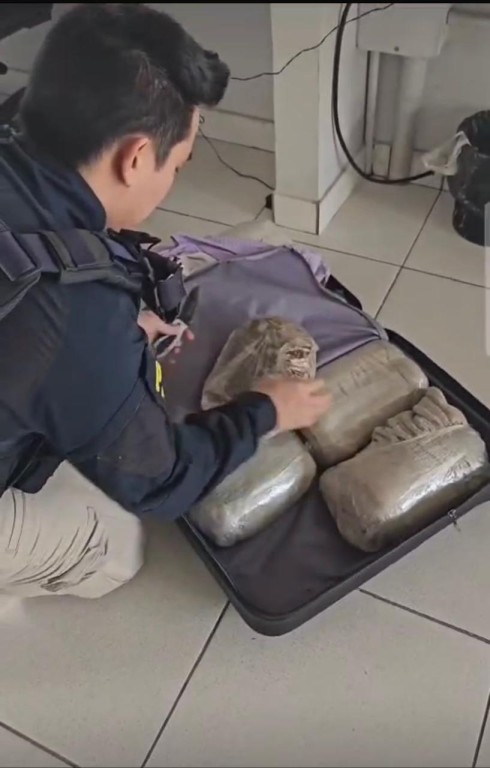 Durante a fiscalização, os policiais perceberam que uma passageira, demonstrava sinais de nervosismo e apresentou versões contraditórias sobre a viagem. Em sua bagagem foram localizados 10 volumes de skunk ( supermaconha ), totalizando aproximadamente 13,630 quilos.