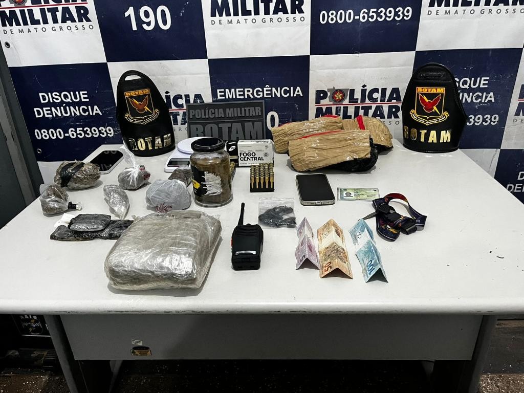 Rotam prende homem com porções de maconha e munições em Cáceres