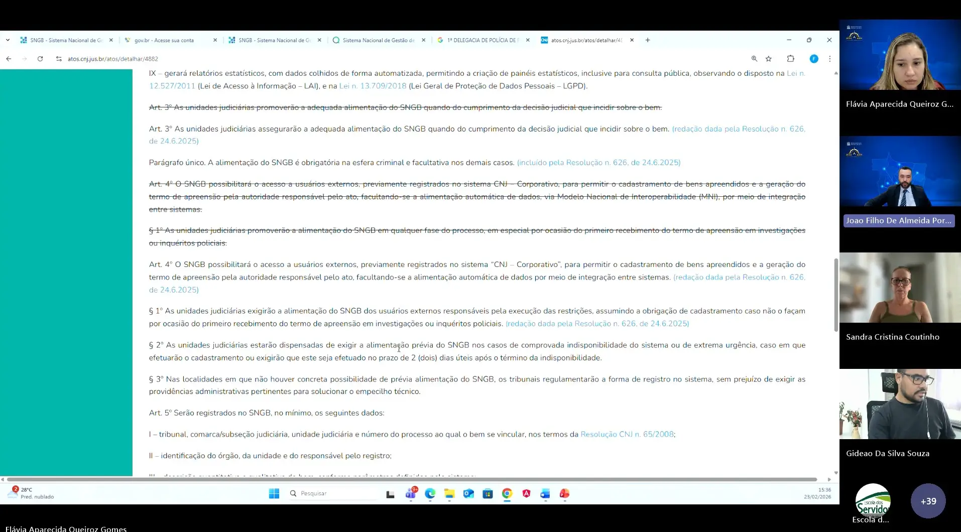 Segundo o juiz auxiliar, João Filho de Almeida Portela, a capacitação ocorre em atendimento à solicitação do Conselho Nacional de Justiça (CNJ) e visa garantir o efetivo cumprimento da Resolução CNJ nº 483, de 19 de dezembro de 2022, alterada pela Resolução CNJ nº 626/2025, que instituiu e reforçou a obrigatoriedade de utilização do Sistema Nacional de Gestão de Bens, especialmente na área criminal.